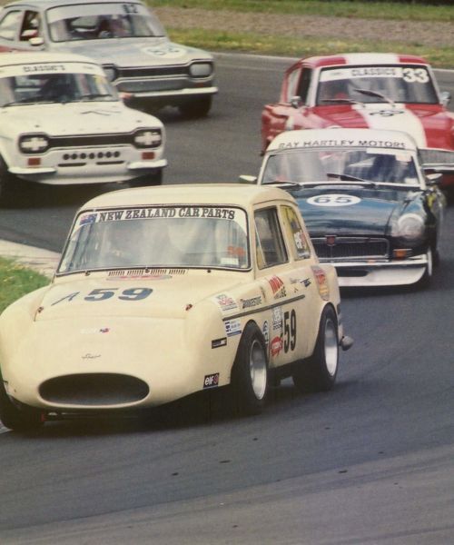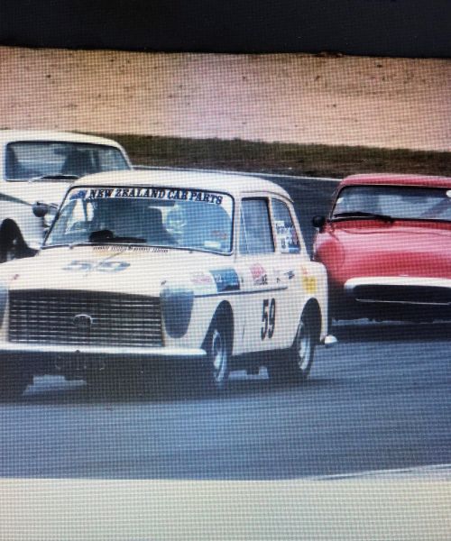 The car now runs a 1275cc engine, straight cut close ratio gearbox, limited slip diff and with a few other minor adjustments now has a top speed of 125 + mph. In 1996 it ran the standing quarter mile at Ohakea in 14.2 seconds.