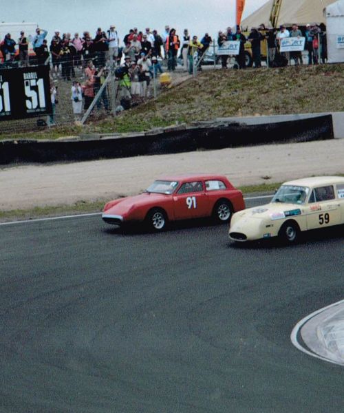 The Dutton Rally covered a distance of 2,5OO km to Adelaide , the only trouble incurred was running out of fuel twice. A tremendous engineering effort ! (with no shake down testing). Kevin and Robyn drove the support vehicle with spares, (which were not required at all). The Elfin Historic races were held the following Thursday at Adelaide Grand Prix Circuit, Brian approached these with a touch of reserve, having not raced the car before.