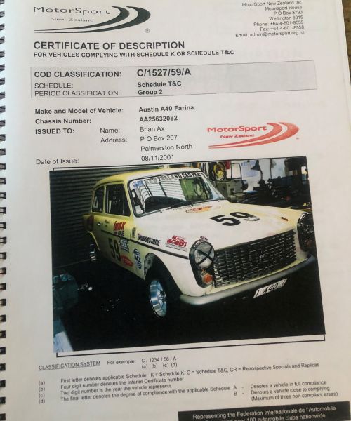 Built in l963. Chassis No. S6317. Brian still keeps the original I.D. plate in the safe at his Engineering Factory in Palmerston North, New Zealand, a replica plate is attached to the dash panel. This car was the fourth out of only five Mallala's ever built. The fourth Mallala left the factory as a rolling chassis to start a long journey to England. Before it left Australia it was raced once at the Calder Race Circuit with a 1600cc lotus twin cam engine.