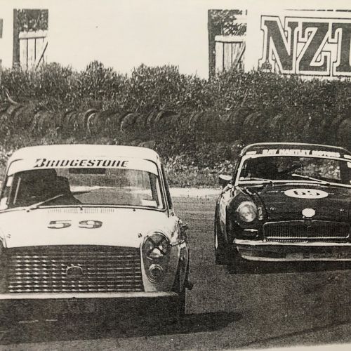 The next year I purchased the original motor from Denny Hulme’s Former Junior Cooper which I modified to 90hp. This motor that I raced is now back in its original Cooper chassis in Christchurch. With the advice from BMC’s competitions department, I bored it out to 1100cc specs. I manufactured my own dry sump pump using the body of an Austin A55 oil pump driven off the 648 camshaft. The car was the fastest under 1100cc. I retired from motor racing and sold the car with a standard A40 motor to Terrance Holland 30/07/1965.