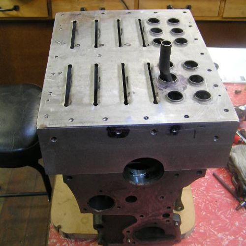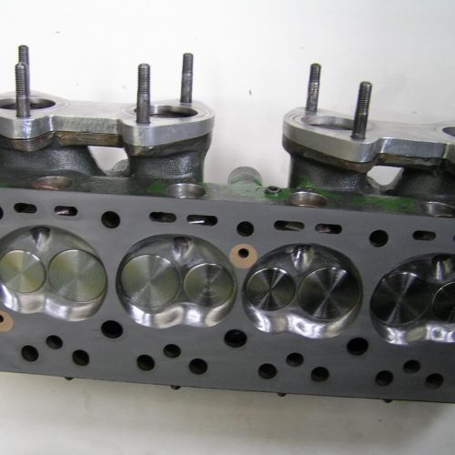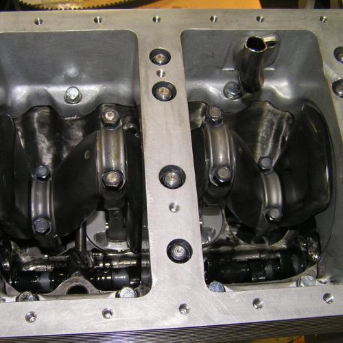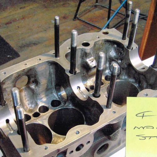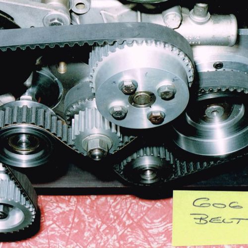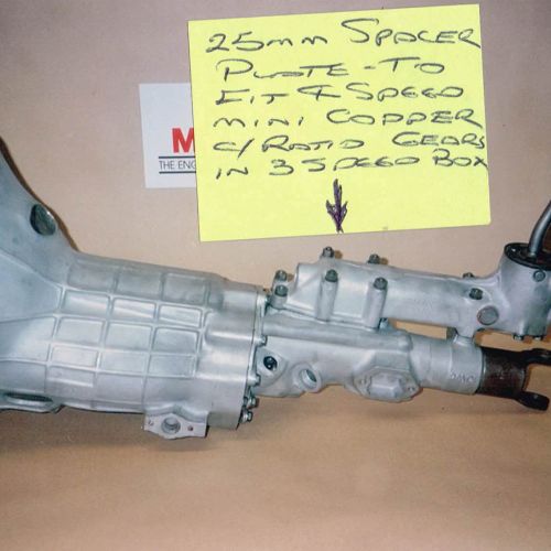 I fitted a 1960 vintage 7 port Dutch AKM cylinder head (a reproduction head specially for Mini’s) this was modified gas flow and surpassed David Vizard’s specifications. This was fitted with 1.5 ratio rockers, hardened valves and with 2-40 DCOE carburetors complete with a 3 branch exhaust. This motor with 12.9 comp ratio produced 150 bhp and 140 ft/lb. of torque on a bench dyno at 6100 rpm. The gearbox was unique in that it was modified to fit a 4 speed Mini A+ straight cut gear set. After David Vizard drove the car, he suggested that I increase the stroke length 40mm to give a better stroke/crankshaft angle. This entailed making a 7 series 40mm thick alloy heat treated spacer block to be lapped in to the original main bearing tunnels. This allowed for the new 40mm longer forged conrods to be fitted to the engine, this only produced another 2hp but gave a lot better reliability to the engine stress. More hp can easily be maintained with this engine with a different camshaft design to suit the longer stroke.