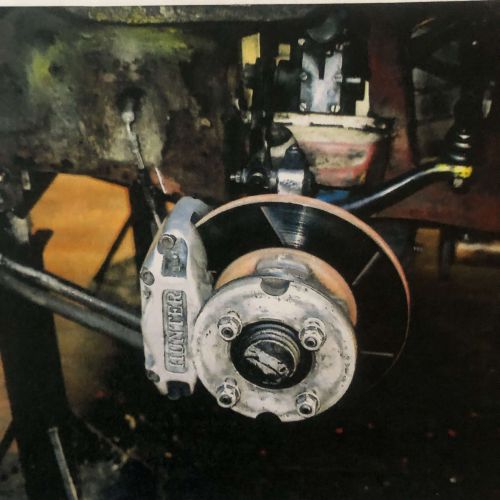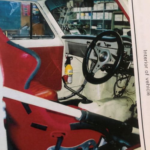 The second racing history begins, I transplanted a 1275 MG motor bored out to 74mm with a re stroked crankshaft to 1440cc and a close ratio gearbox in complete with 1-45 DCOE carburetor. I then used all the original parts including special high tensile axles – limited slip Salisbury diff, uprated shock absorber valves, larger front stub axles, twin ¾” diameter anti roll bars, punched reinforced steel wheels and alloy headlight covers. I fitted Mazda front discs with Hunter alloy calipers with 2-1/8” pistons, lambada exhaust sensor and rose jointed A frame axle locator and fitted aluminum muffs to front and rear brake drums. With light weight carbon fibre bonnet & boot.