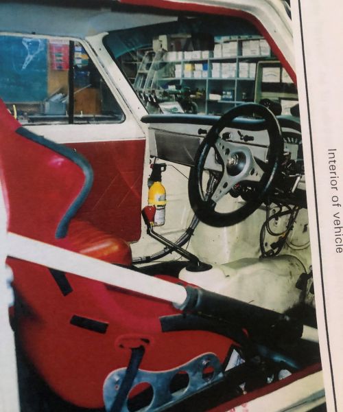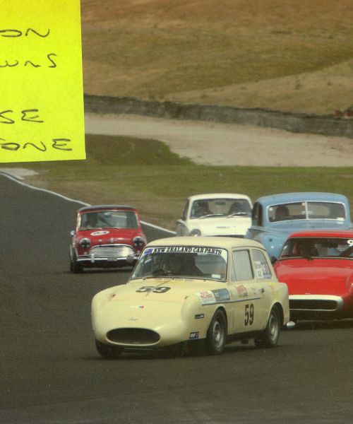 The car now runs a 1275cc engine, straight cut close ratio gearbox, limited slip diff and with a few other minor adjustments now has a top speed of 125 + mph. In 1996 it ran the standing quarter mile at Ohakea in 14.2 seconds.