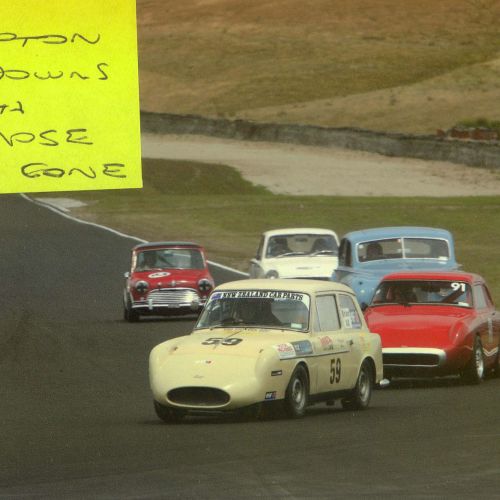 First registered 6/11/1959 by Beaumont Stores, Lower Hutt. First purchased by Brian 15/05/1962 and is still road registered (on hold). First raced at Levin Motor Racing Circuit in 1962. The engine was a bored out +60 to 998cc BMC 648 camshaft, close ratio gearbox and limited slip differential. A very competitive car under 1000cc running second to the grey and black A40 Farina of Kerry Grant with a FJ motor from the ex Denny Hulme Former Junior Cooper.