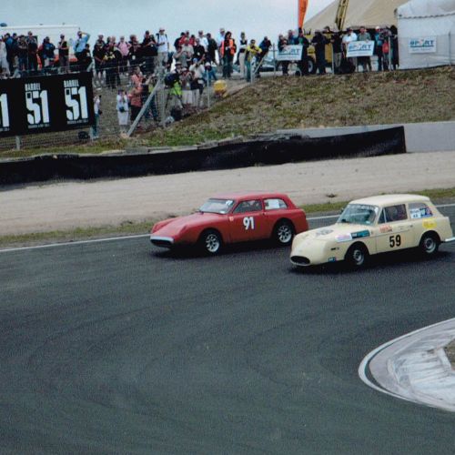 The second racing history begins, I transplanted a 1275 MG motor bored out to 74mm with a re stroked crankshaft to 1440cc and a close ratio gearbox in complete with 1-45 DCOE carburetor. I then used all the original parts including special high tensile axles – limited slip Salisbury diff, uprated shock absorber valves, larger front stub axles, twin ¾” diameter anti roll bars, punched reinforced steel wheels and alloy headlight covers. I fitted Mazda front discs with Hunter alloy calipers with 2-1/8” pistons, lambada exhaust sensor and rose jointed A frame axle locator and fitted aluminum muffs to front and rear brake drums. With light weight carbon fibre bonnet & boot.